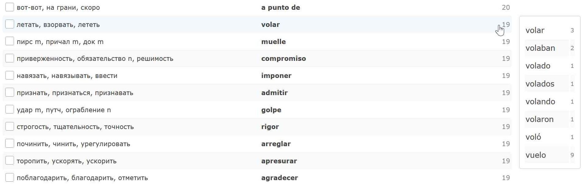 All words in the text are sorted in descending order of frequency. To see word forms, hover over the frequency number.
